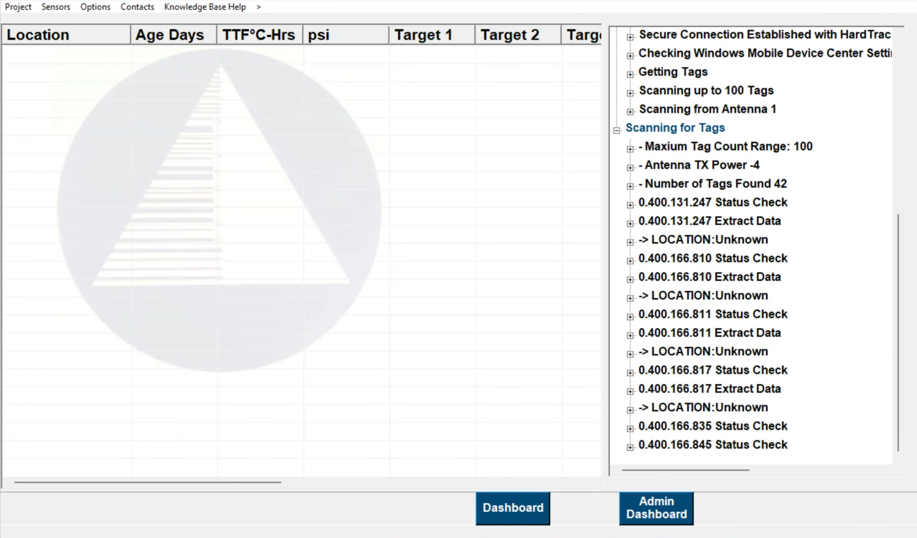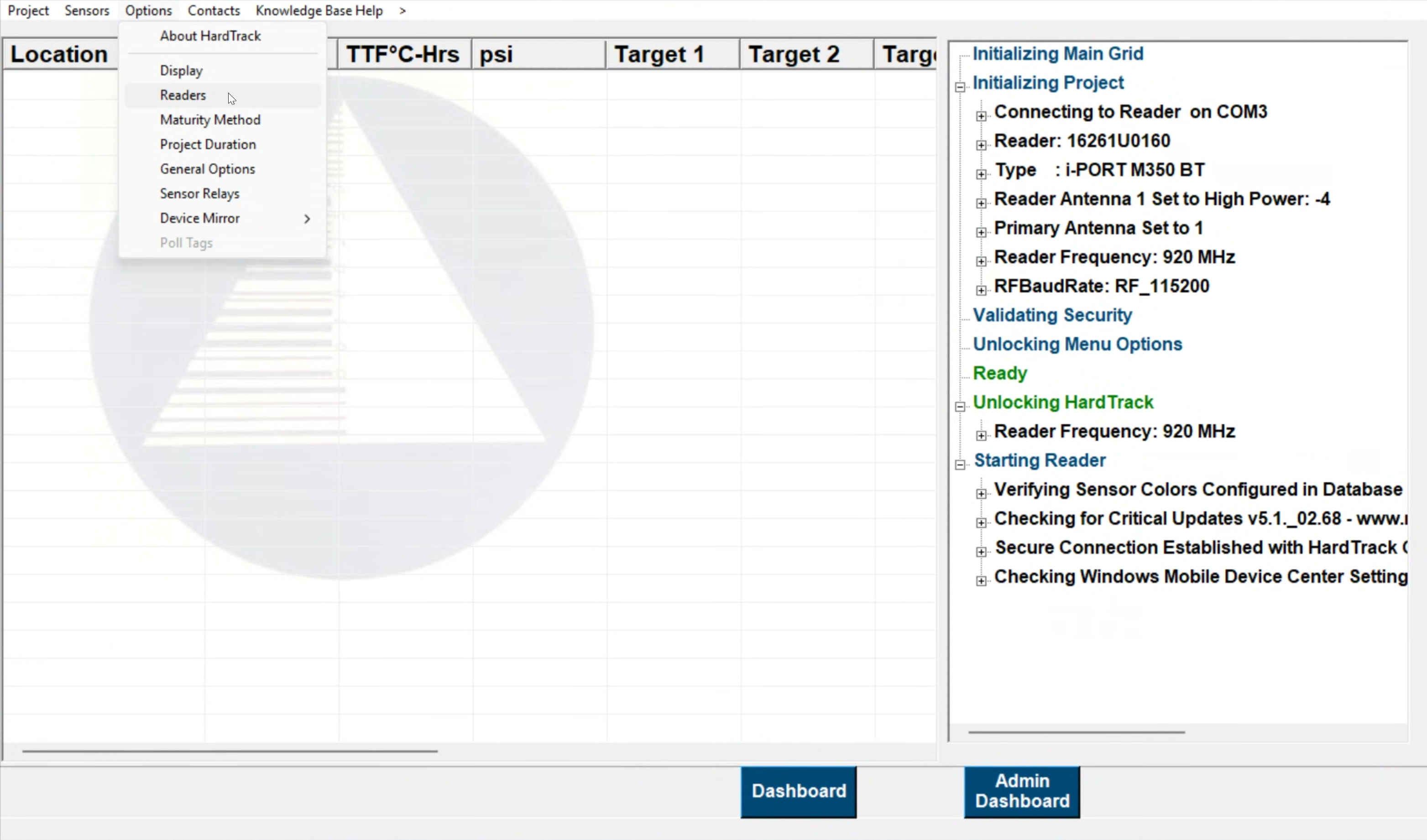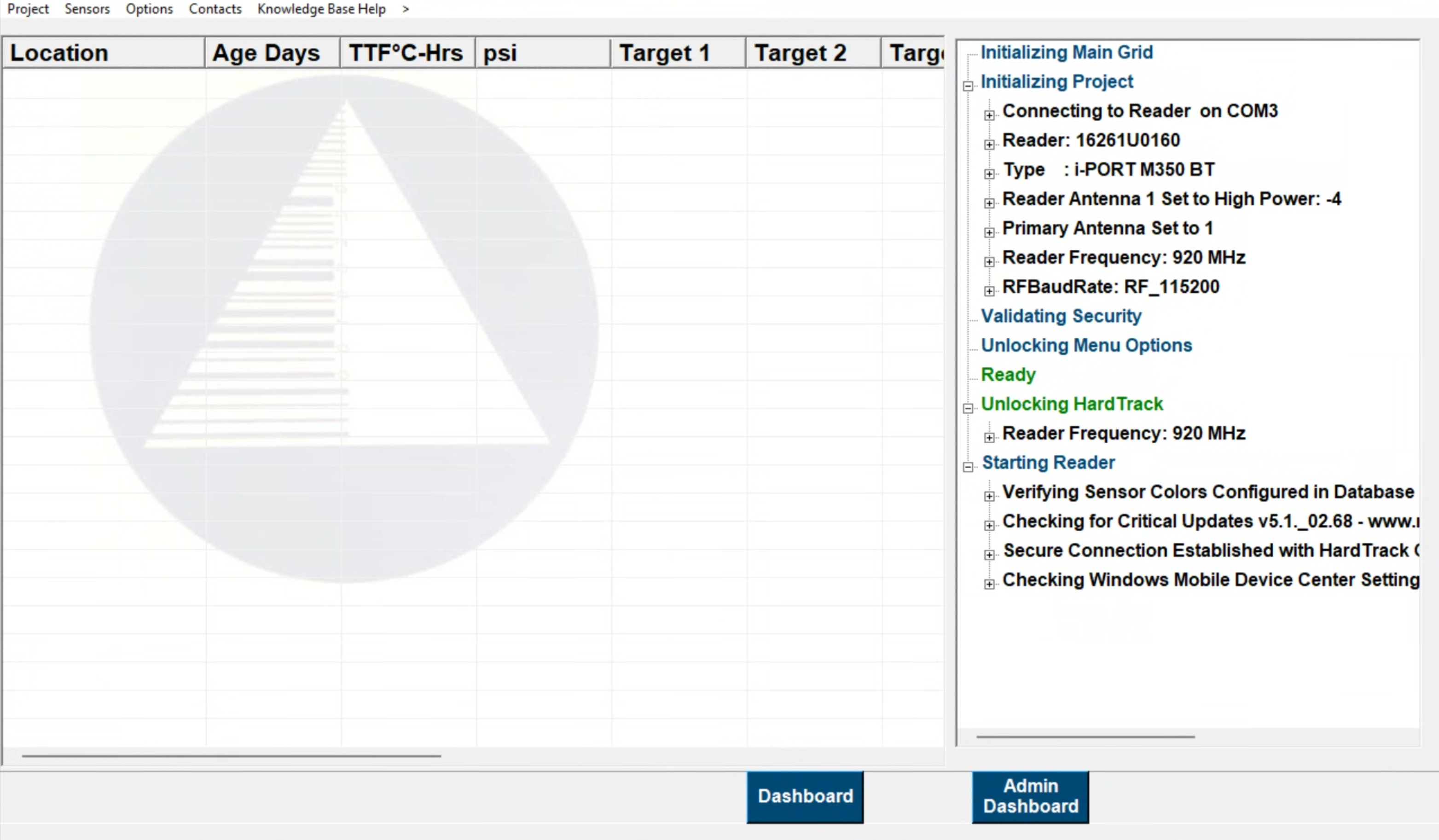If the equipment is set up correctly, with the Wireless Reader attached to the Rugged Tablet with the USB cable, when you start HardTrack, you will see the following displayed: