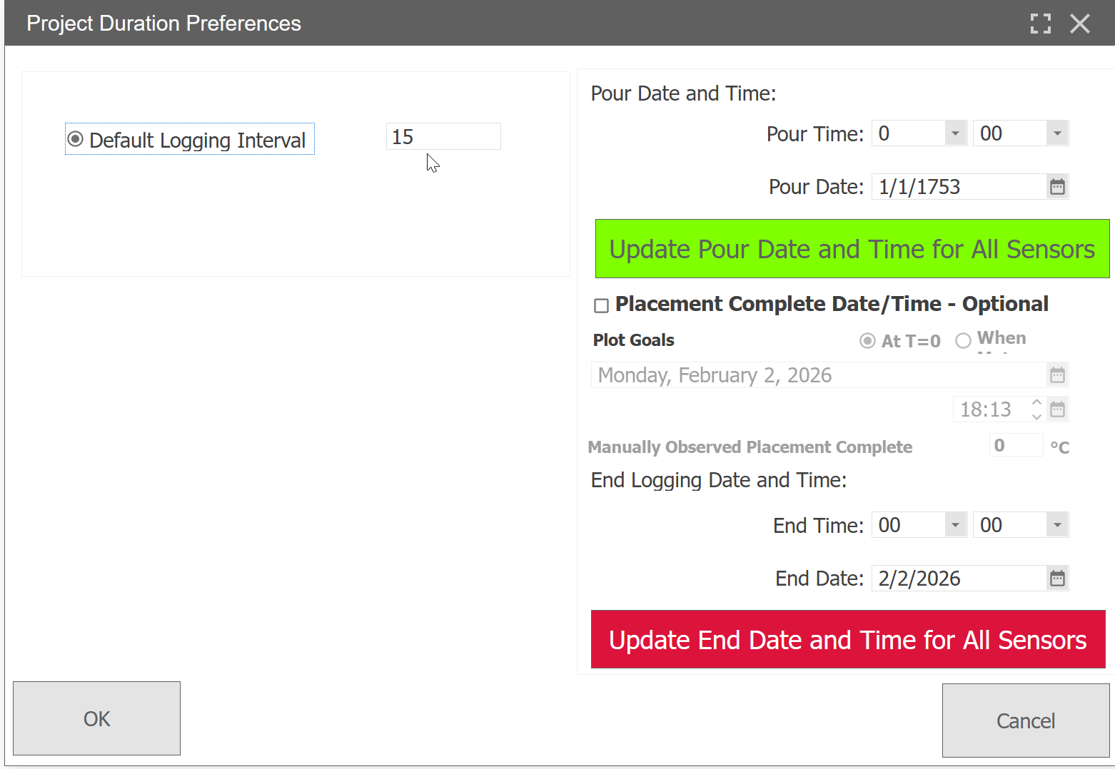 Before Reusing the Sensors, please click on Options, Project Duration, and set the correct logging interval for the loggers, i.e. 15, 30, 60, etc.