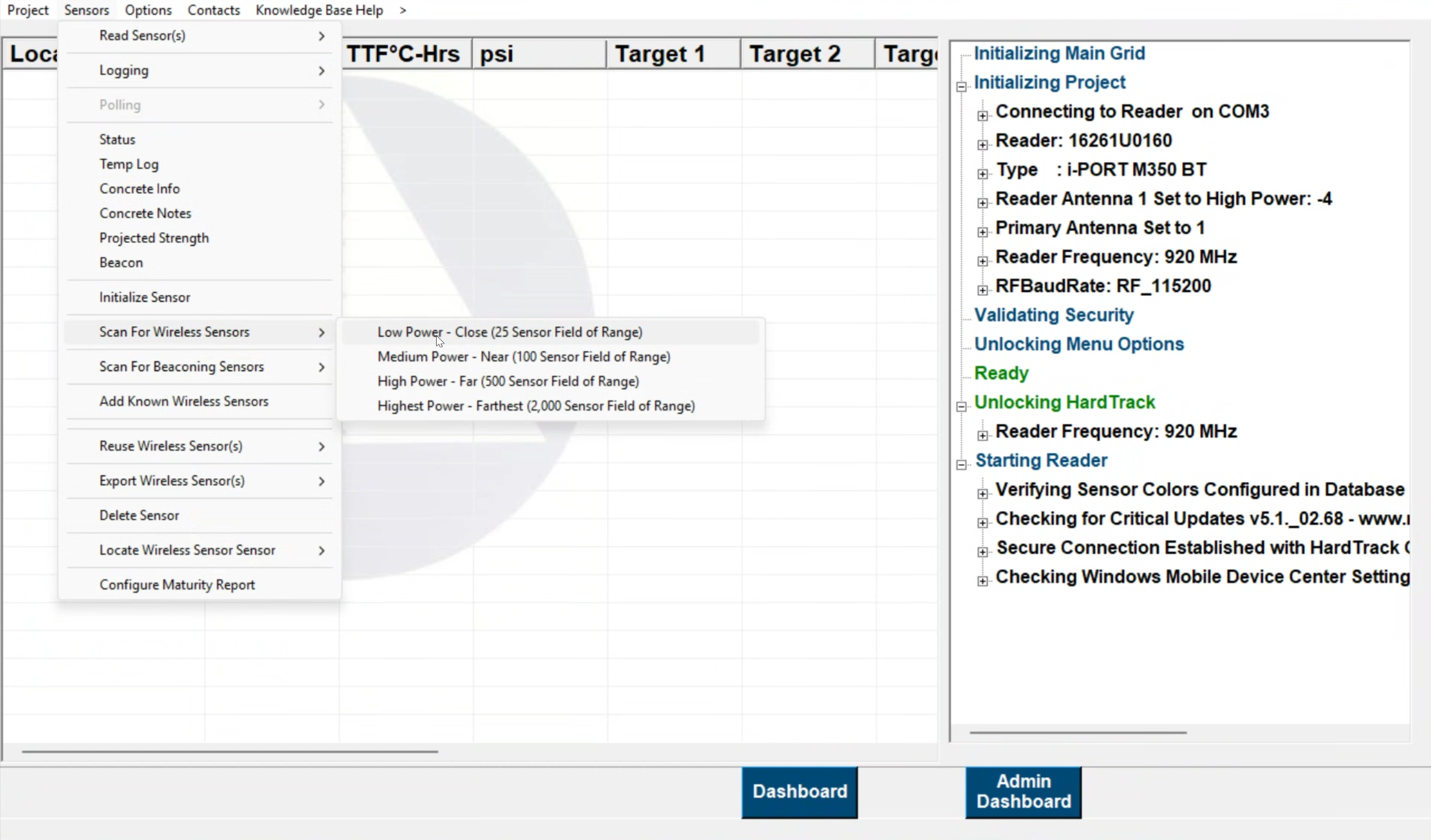 1) You can Scan for Wireless Sensors, and HardTrack will search the surrounding area: