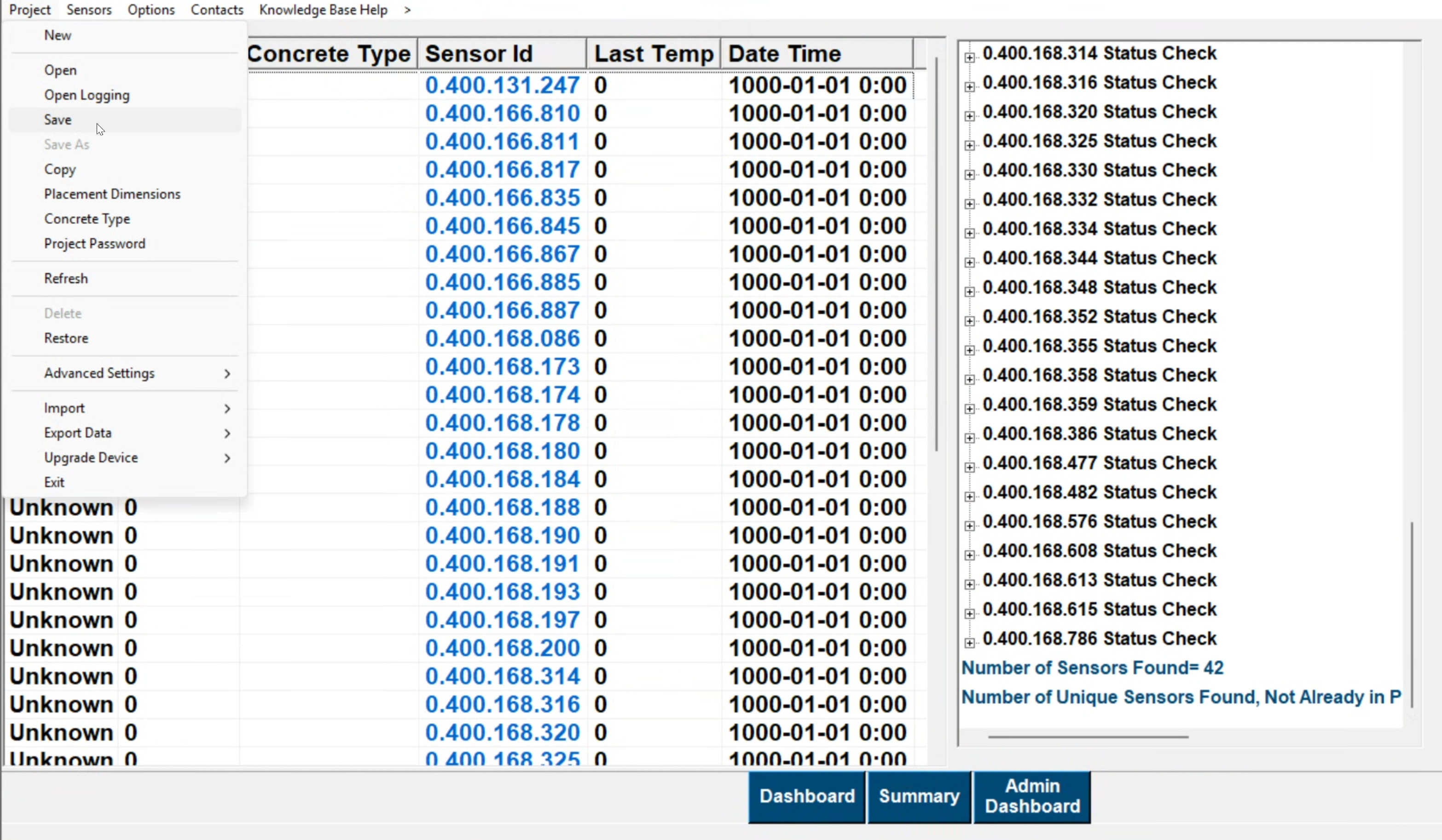 - Click Project, Open, then type "Known" and press tab or enter, you will see a Project you can click on that contains all of the loggers you have ordered. This will open the known Sensor Project and load a copy onto the Tablet.