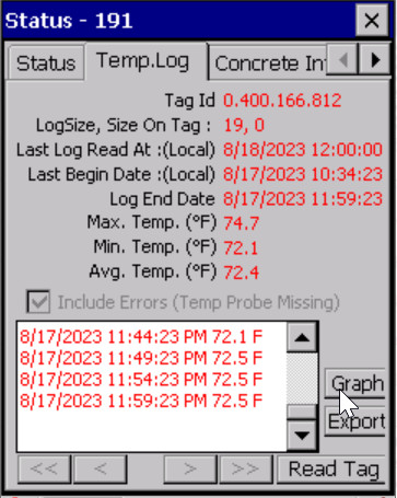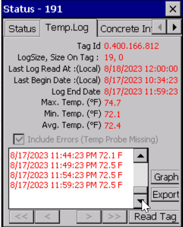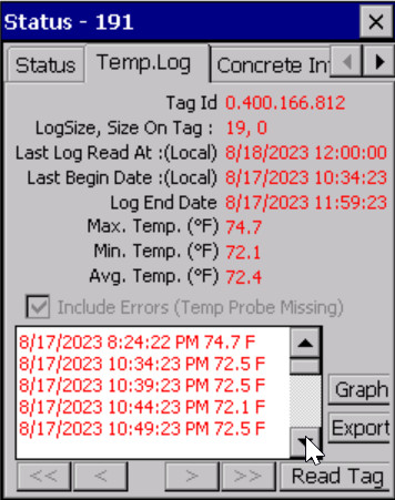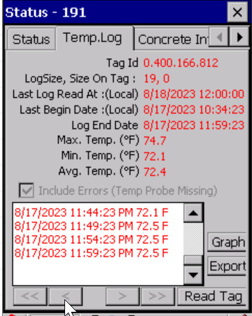 8) You can view the Temperature Readings by double-clicking on a Tag, then clicking on the Temp.Log tab at the top