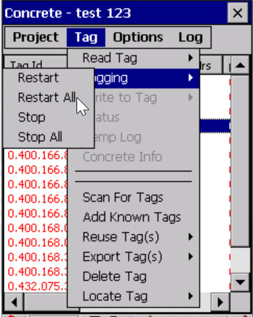 6) If you have not already Started Logging temperatures, click on Tag, Logging, Restart All