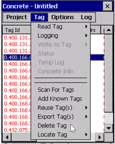 3) Delete any Tags you do not want in the placement/pour. Single-click the Tag, then click Tag, Delete Tag. To remove it.