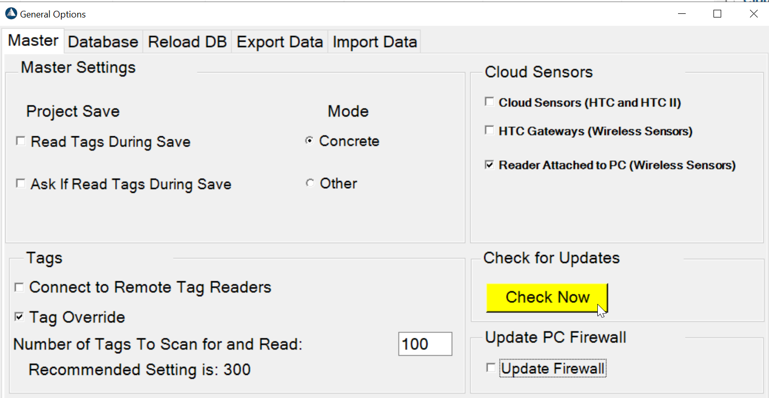 2) After HardTrack starts, click on Options, General Options, and check the Update Firewall option.